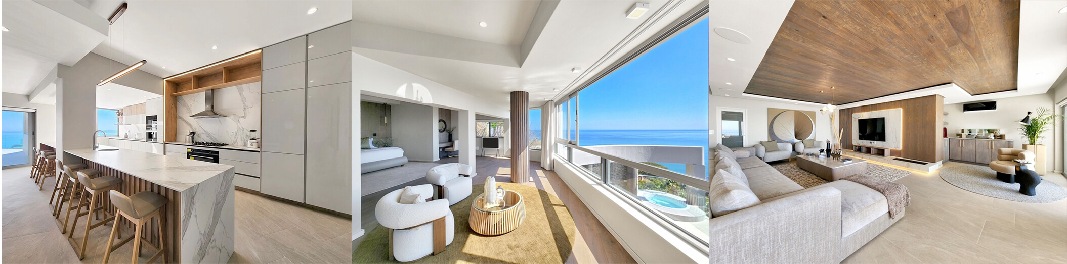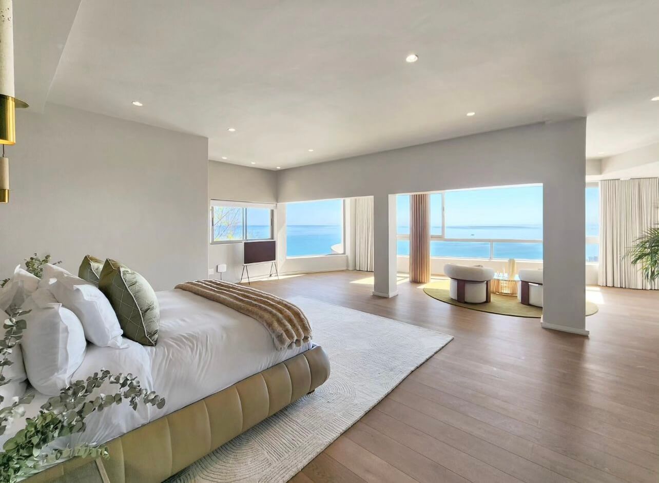 From the moment you enter, the ocean commands attention — a seamless 180° sweep of blue that stretches beyond the city skyline. Mornings begin with still water reflecting light across the terrace. Evenings dissolve into gold as the sun drops into the sea.