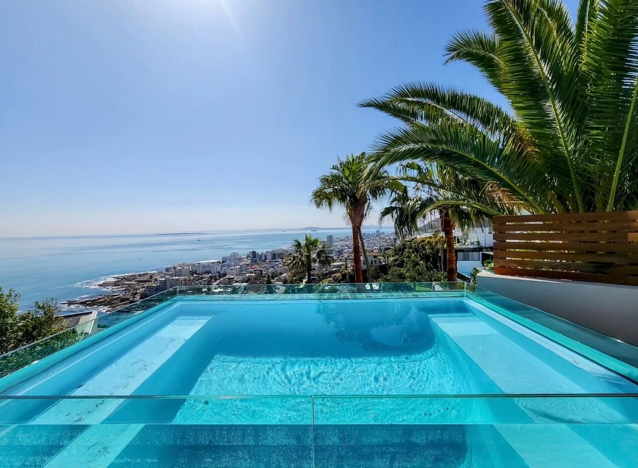 The city feels close — Sea Point in five minutes, Clifton’s beaches in seven, Camps Bay in ten, the V&A Waterfront in fifteen — yet from the terrace, it feels worlds away.